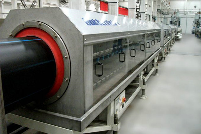 2、采用專有技術(shù)的定徑和冷卻系統(tǒng),采用水膜潤滑和水環(huán)式的冷卻,以適應(yīng)HDPE、PE物料的要求,確保高速生產(chǎn)厚壁管是直徑和圓度的穩(wěn)定。